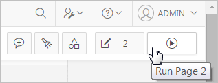The Run Page button resembles a small, gray play button and displays in the upper right corner of many pages within Application Builder. Clicking the Run Page button runs the current page or the last selected page.