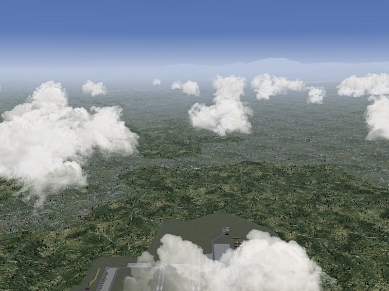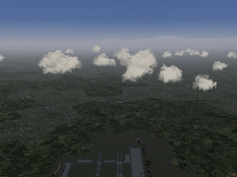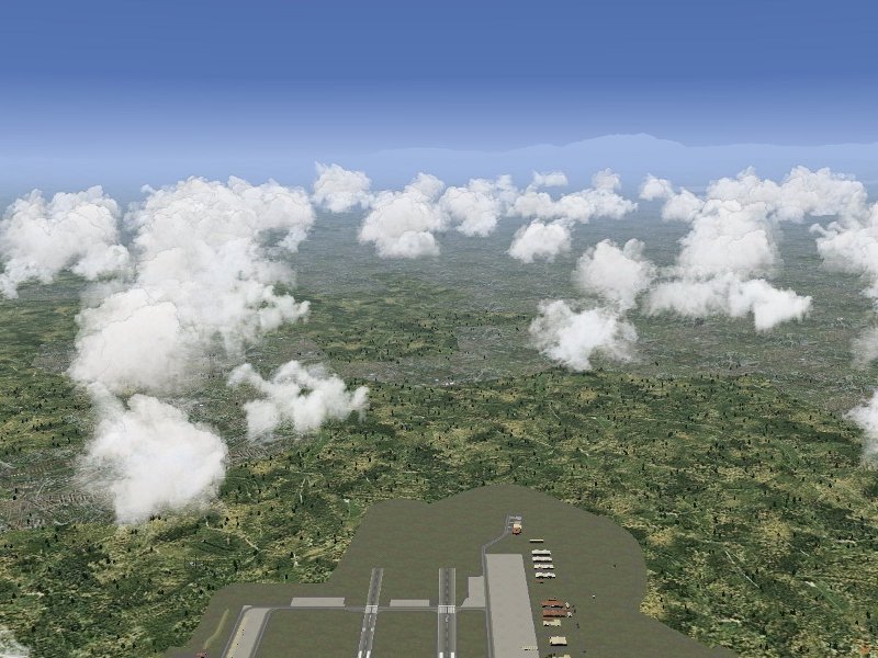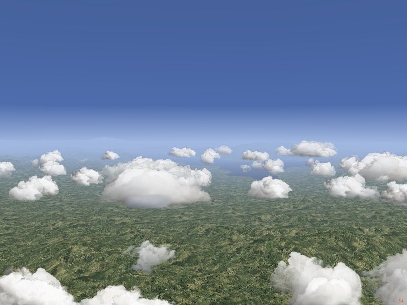 The general problem is finding a good balance between spending a lot of CPU time to make a single cloud model appear perfect, and the performance degradation that occurs if hundreds of clouds are placed in the sky. The basic aim is to provide realistic appearance for clouds from a standard view position (in cockpit looking forward), to retain acceptable appearance from other positions and to allow large cloud layers.
