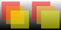 | import QtQuick 2.0 Rectangle { width: 200 height: 100 gradient: Gradient { GradientStop { position: 0; color: "white" } GradientStop { position: 1; color: "black" } } Row { opacity: 0.5 Item { id: foo width: 100; height: 100 Rectangle { x: 5; y: 5; width: 60; height: 60; color: "red" } Rectangle { x: 20; y: 20; width: 60; height: 60; color: "orange" } Rectangle { x: 35; y: 35; width: 60; height: 60; color: "yellow" } } ShaderEffectSource { width: 100; height: 100 sourceItem: foo } } } |