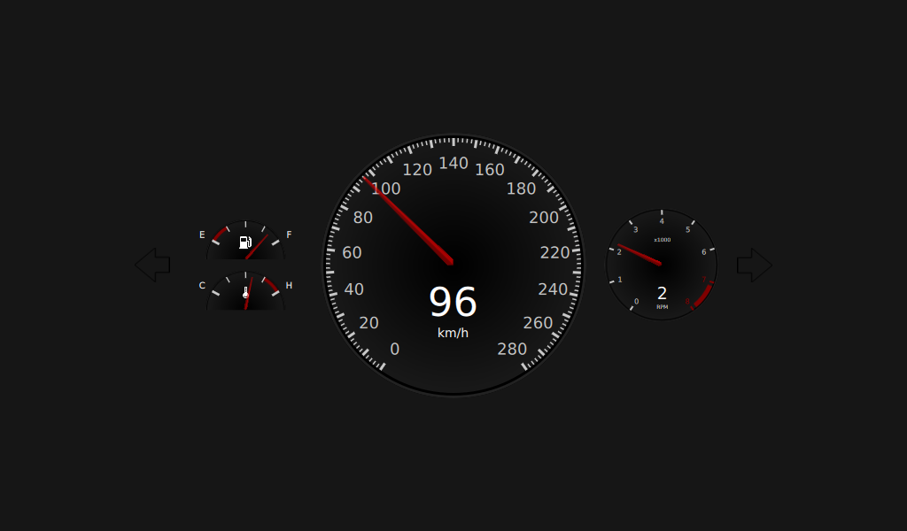 This example project demonstrates the use of CircularGauge to create a car dashboard.