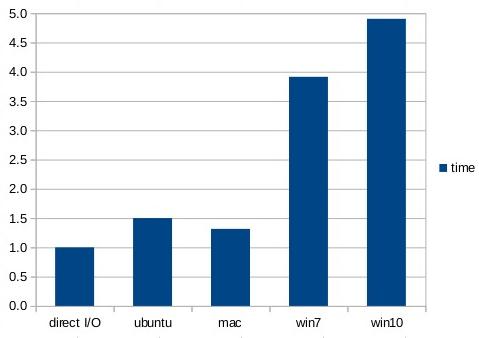 4. I/O performance varies widely depending on operating system and hardware. Make your own measurements before drawing conclusions.
