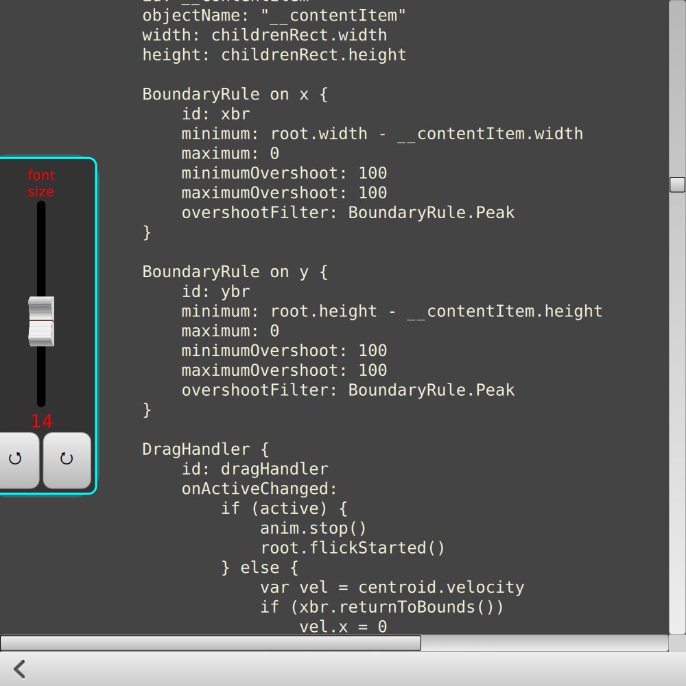 Alternatively, some of the individual QML files can be run on the command line with the qml tool, as a quick reminder to see how a particular kind of component can be built.